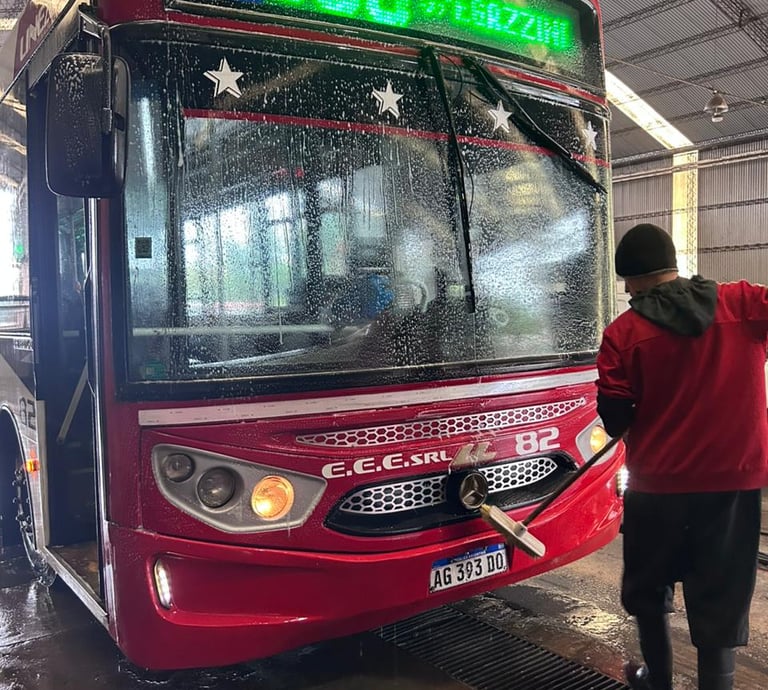 Logramos lavados exteriores de colectivos completos sin rayaduras